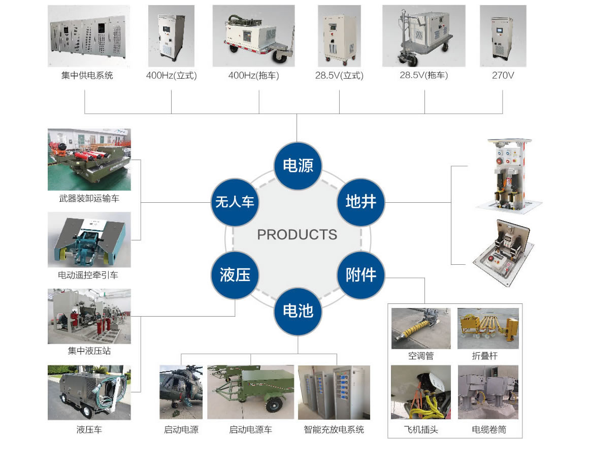 The company has set up three product delivery lines, i.e. ground well, power supply and unmanned vehicle, to cooperate with the marketing system and carry out product development according to the market demand. At present, it has formed six categories of products, including comprehensive ground well, aircraft ground power supply, unmanned vehicle, hydraulic and air tight test, start-up battery, charge and discharge management, and various supporting accessories.