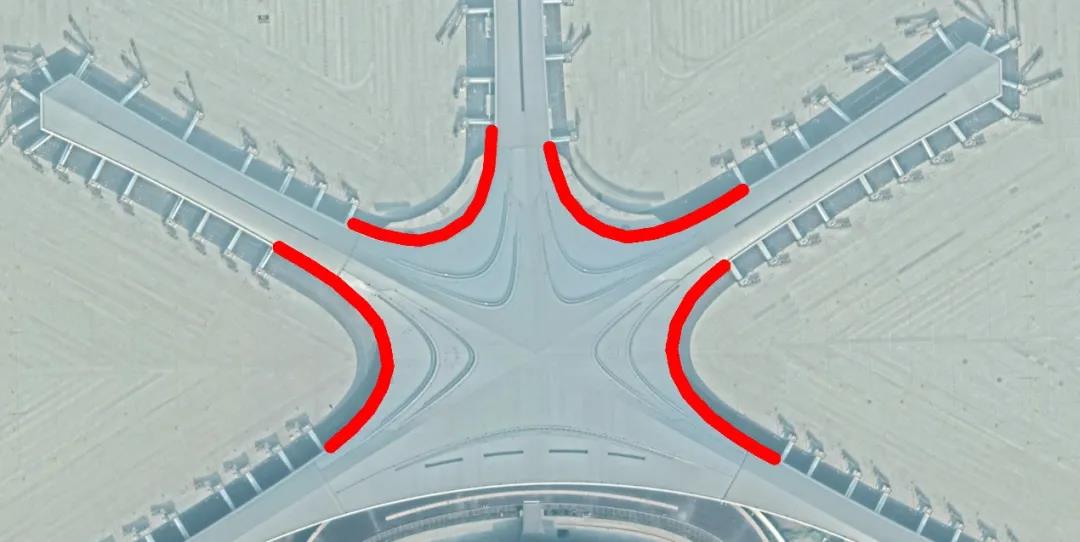 可以看出,“爪”型航站樓部分邊線(上圖中紅色部分)利用不充分。