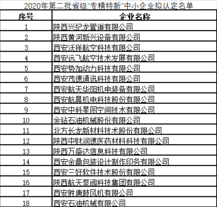 近日,《關于組織開展2020年陜西省“專精特新”中小企業(yè)申報工作的通知》,2020年第二批省級“專精特新”中小企業(yè)擬認定名單予以公示,西安睿諾航空裝備有限公司獲得陜西省“專精特新”中小企業(yè)認定。