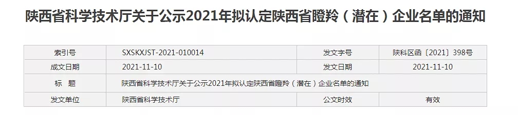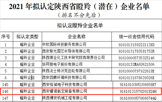 西安睿諾入選2021陜西省瞪羚企業(yè)