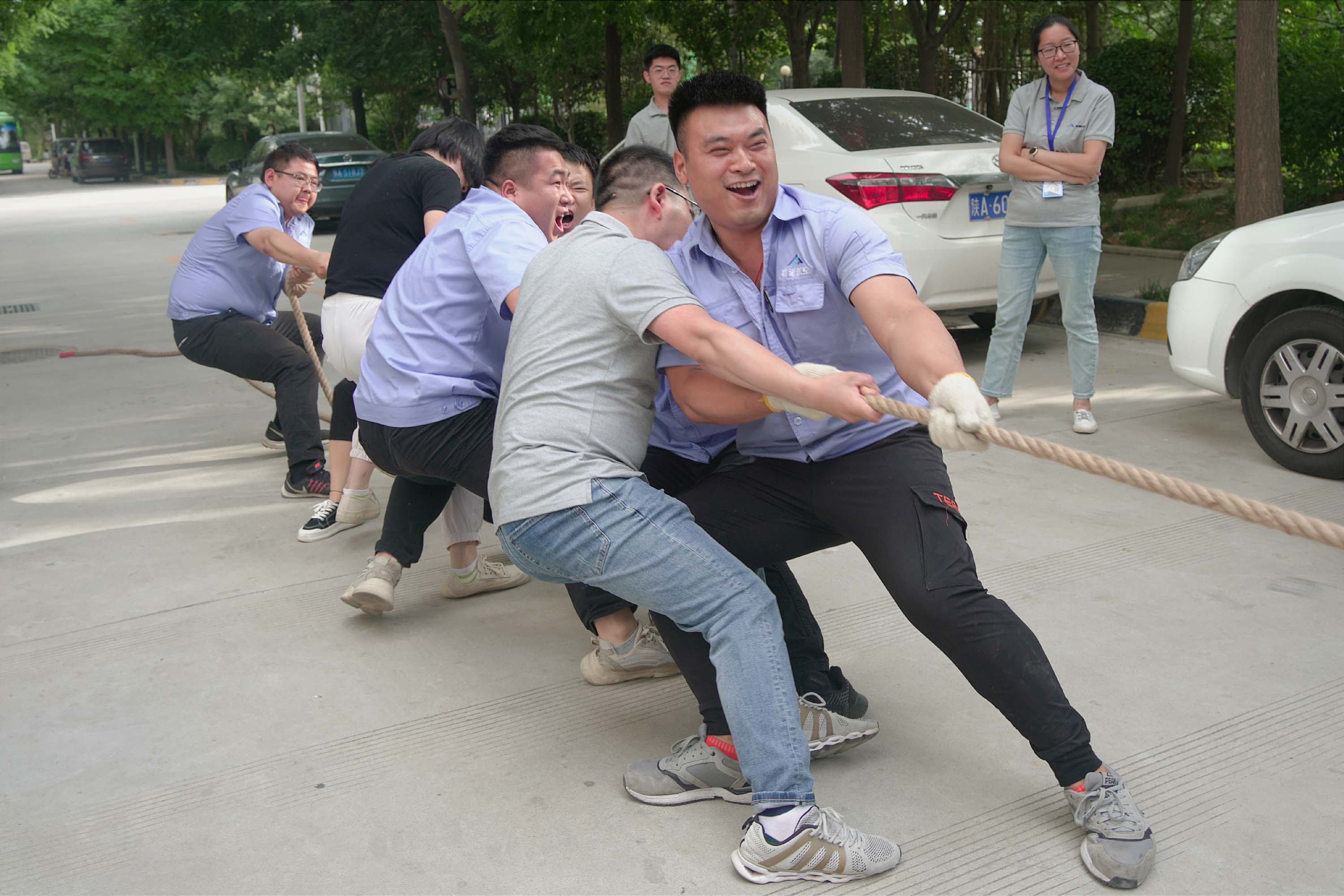 各位參賽隊(duì)員同時(shí)朝同一個(gè)方向使勁