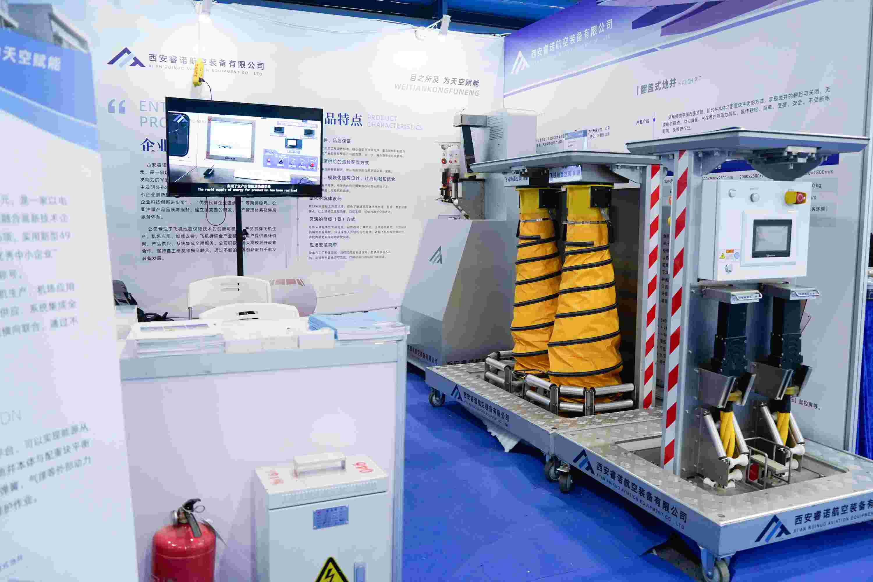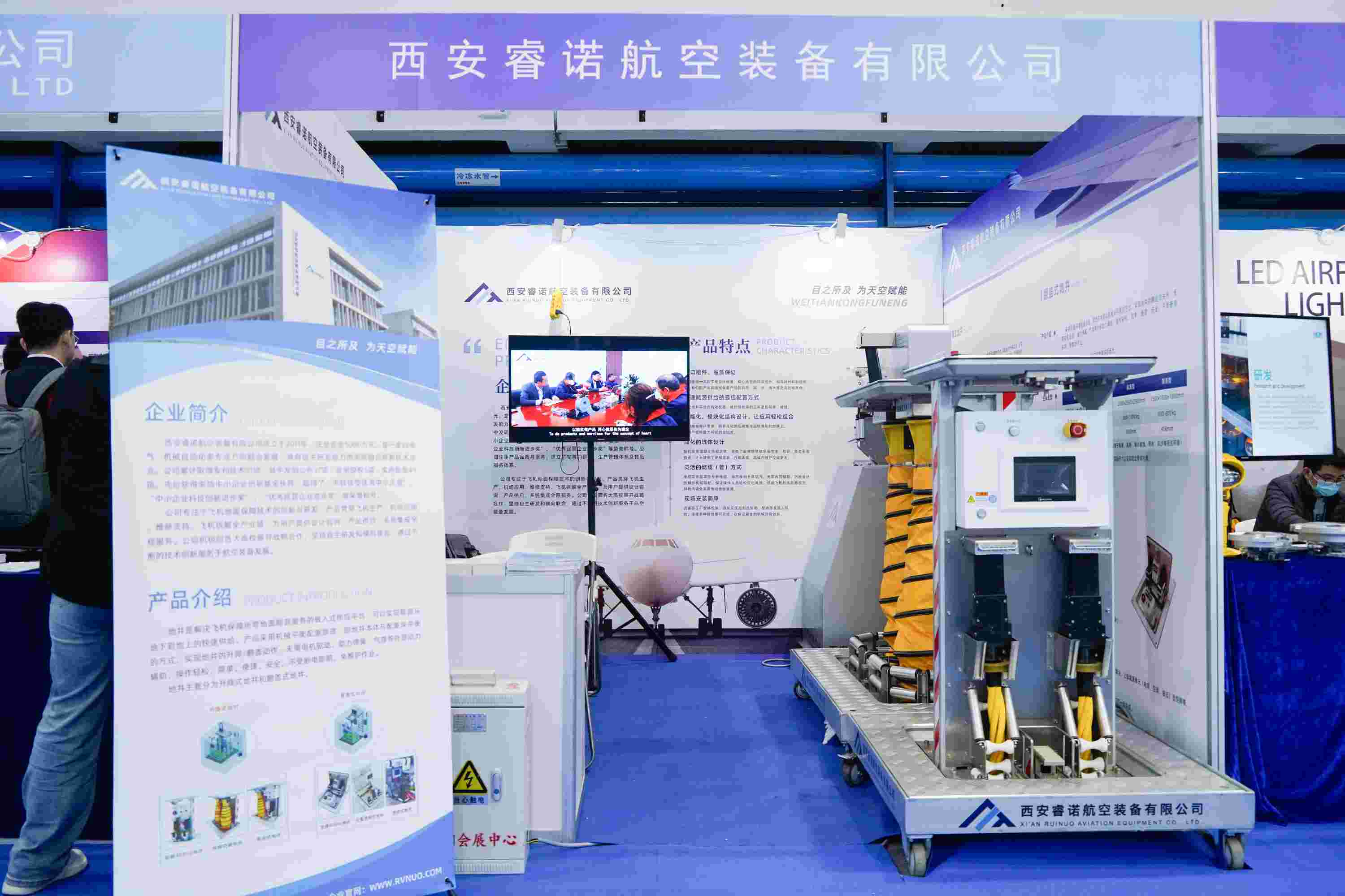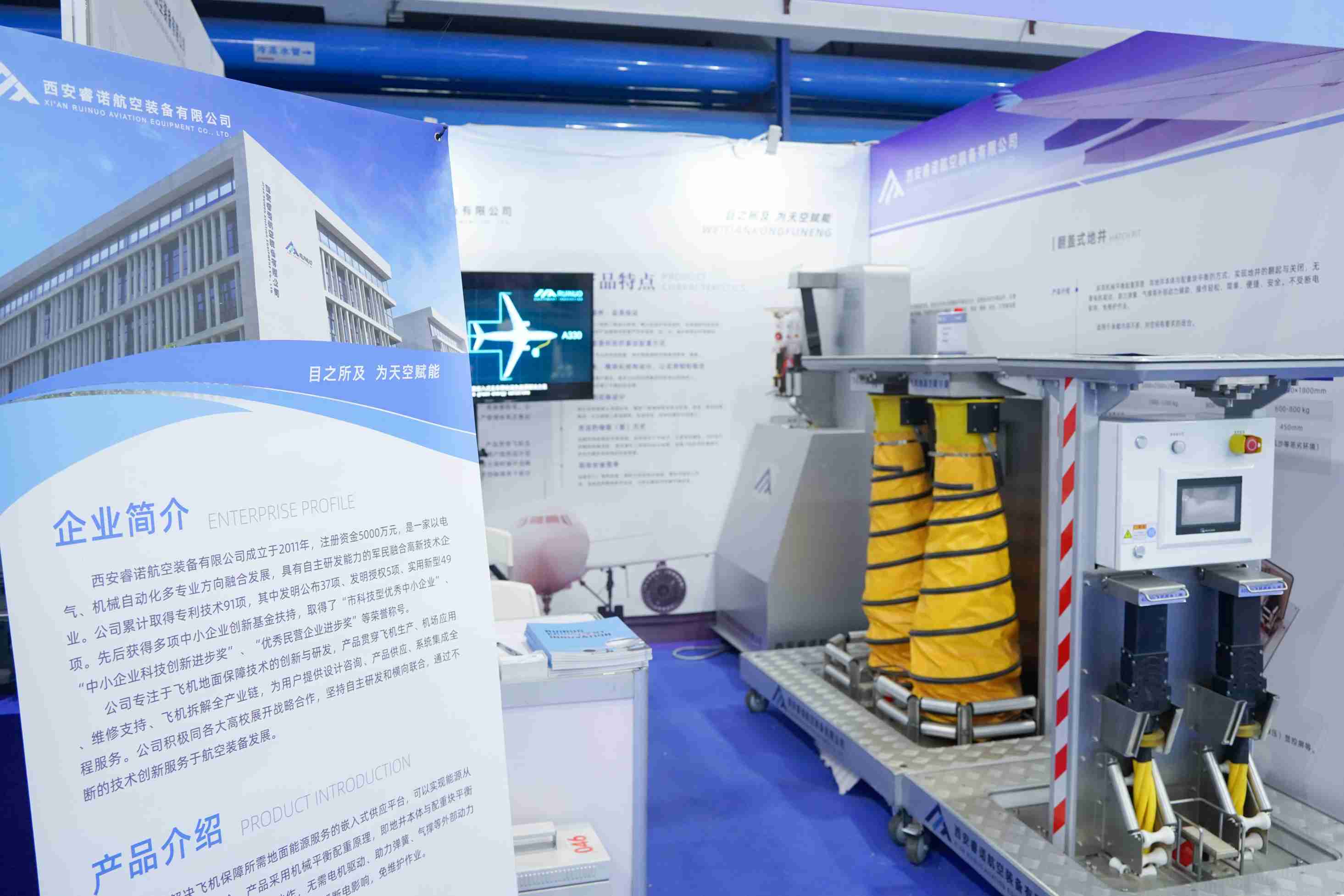 本次展會,西安睿諾攜飛機地面保障設備解決方案,包括升降式地井、電纜夾送等多款創(chuàng)新產品參展。